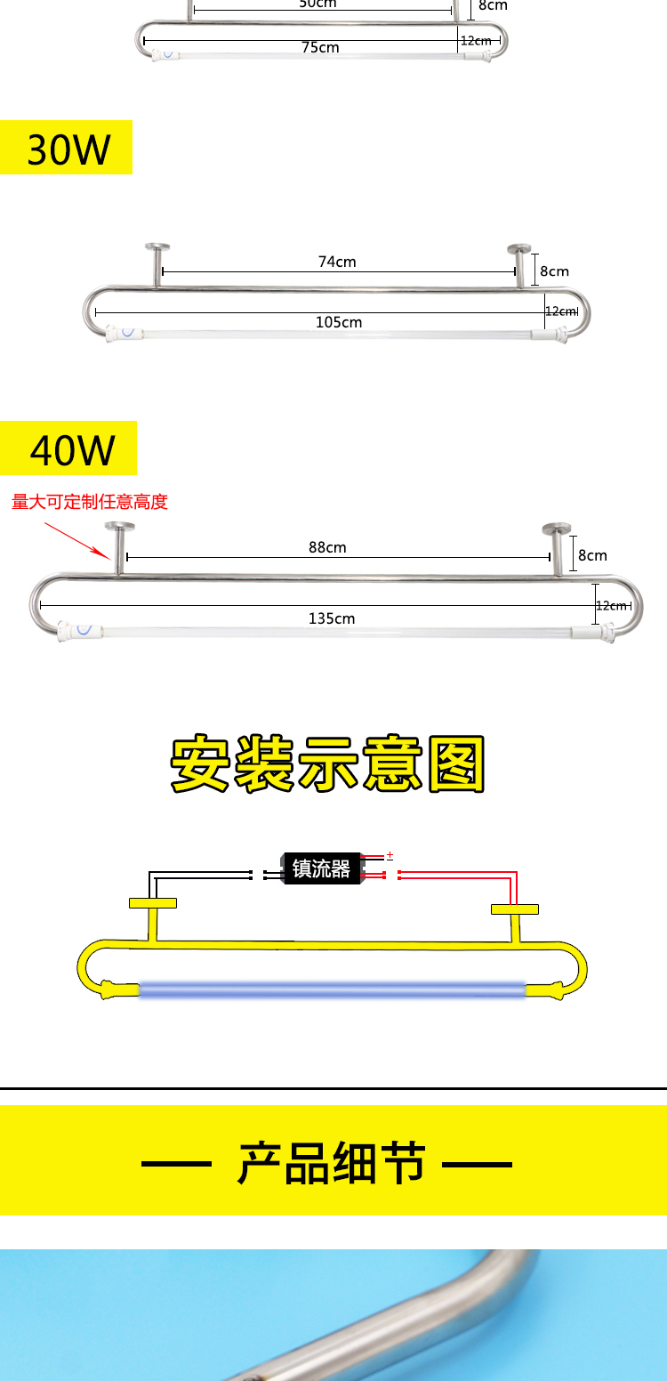 不锈钢弯管杀菌灯