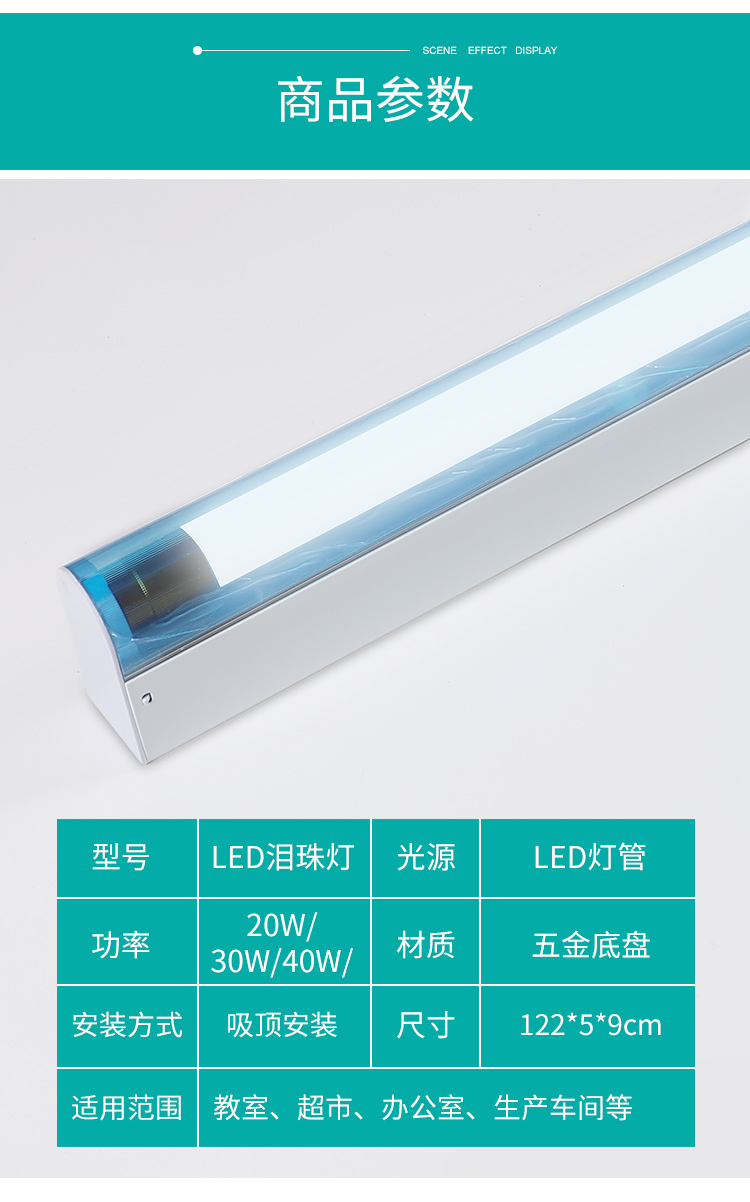 led泪珠灯T8单管日光灯架三防灯净化灯